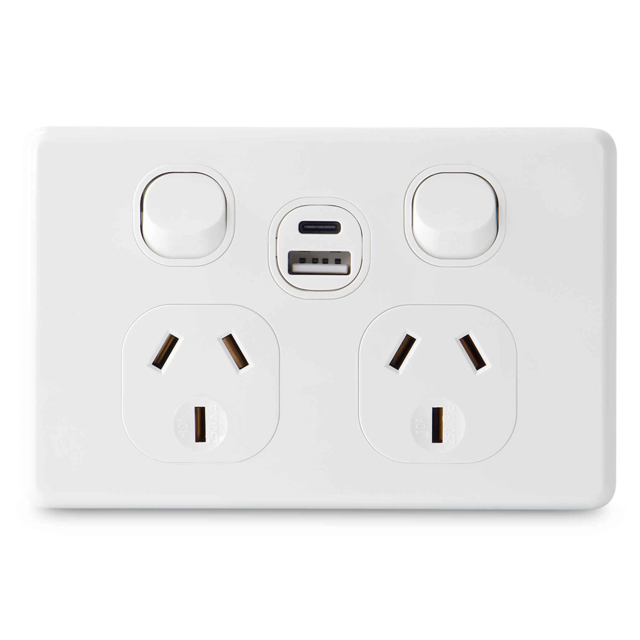 Classic Double 10Amp Powerpoint with Double Type A+C Powered USB 2.1AMP