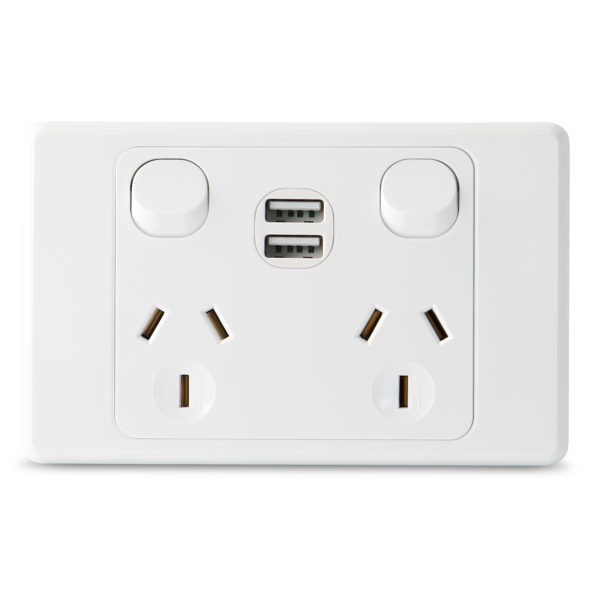 Double 10Amp Powerpoint with Double Type A Powered USB 2.1AMP